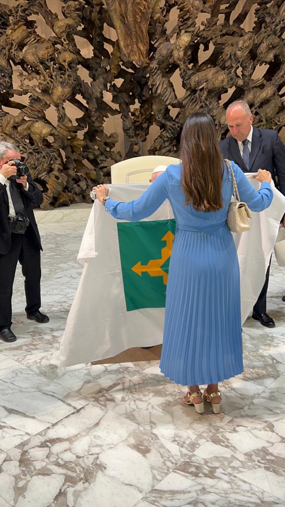 Primeira dama do DF, Mayara Noronha Rocha se encontra com o papa para pedir bênçãos para a cidade
